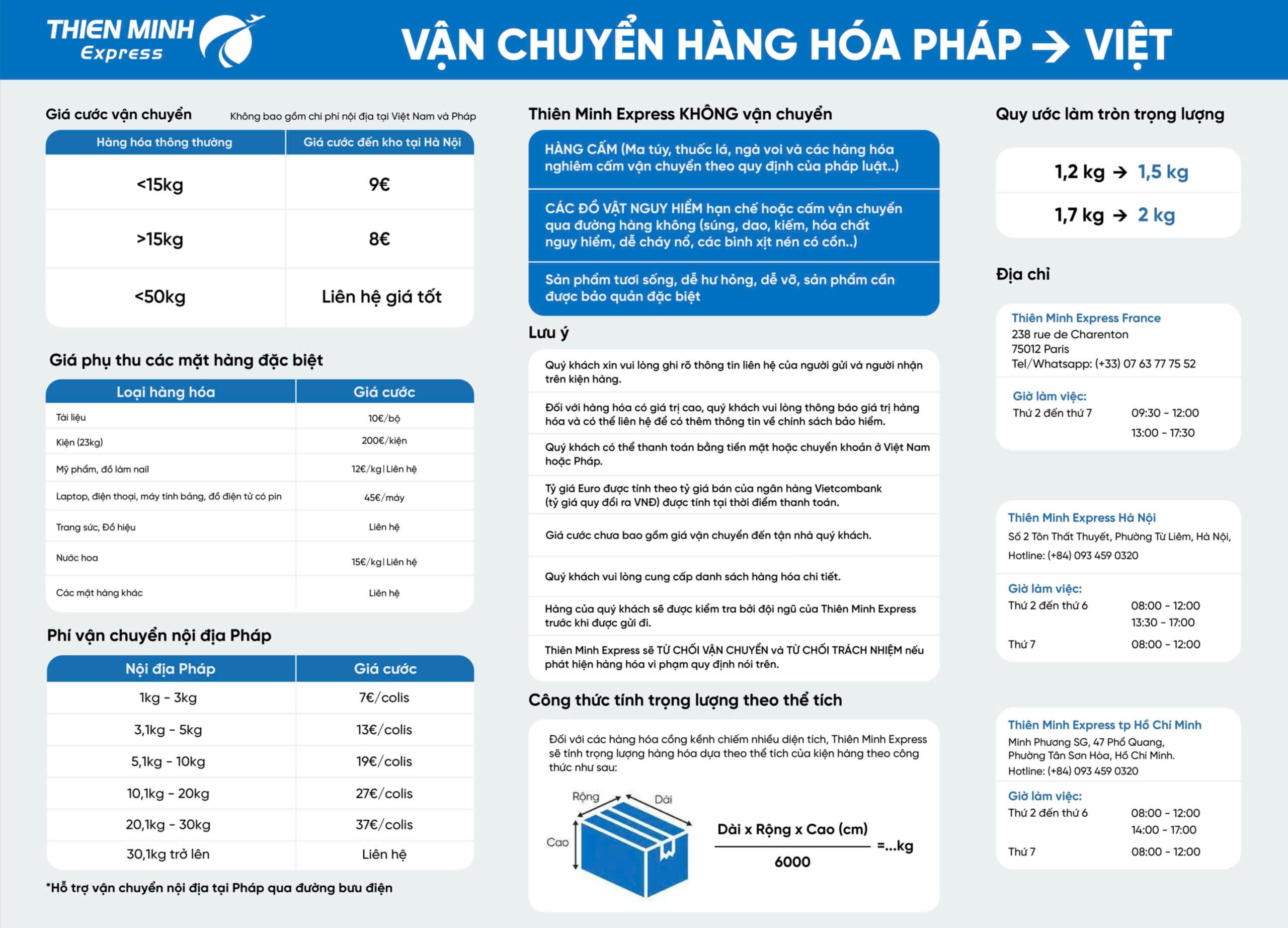 BIỂU PHÍ DỊCH VỤ THIÊN MINH EXPRESS