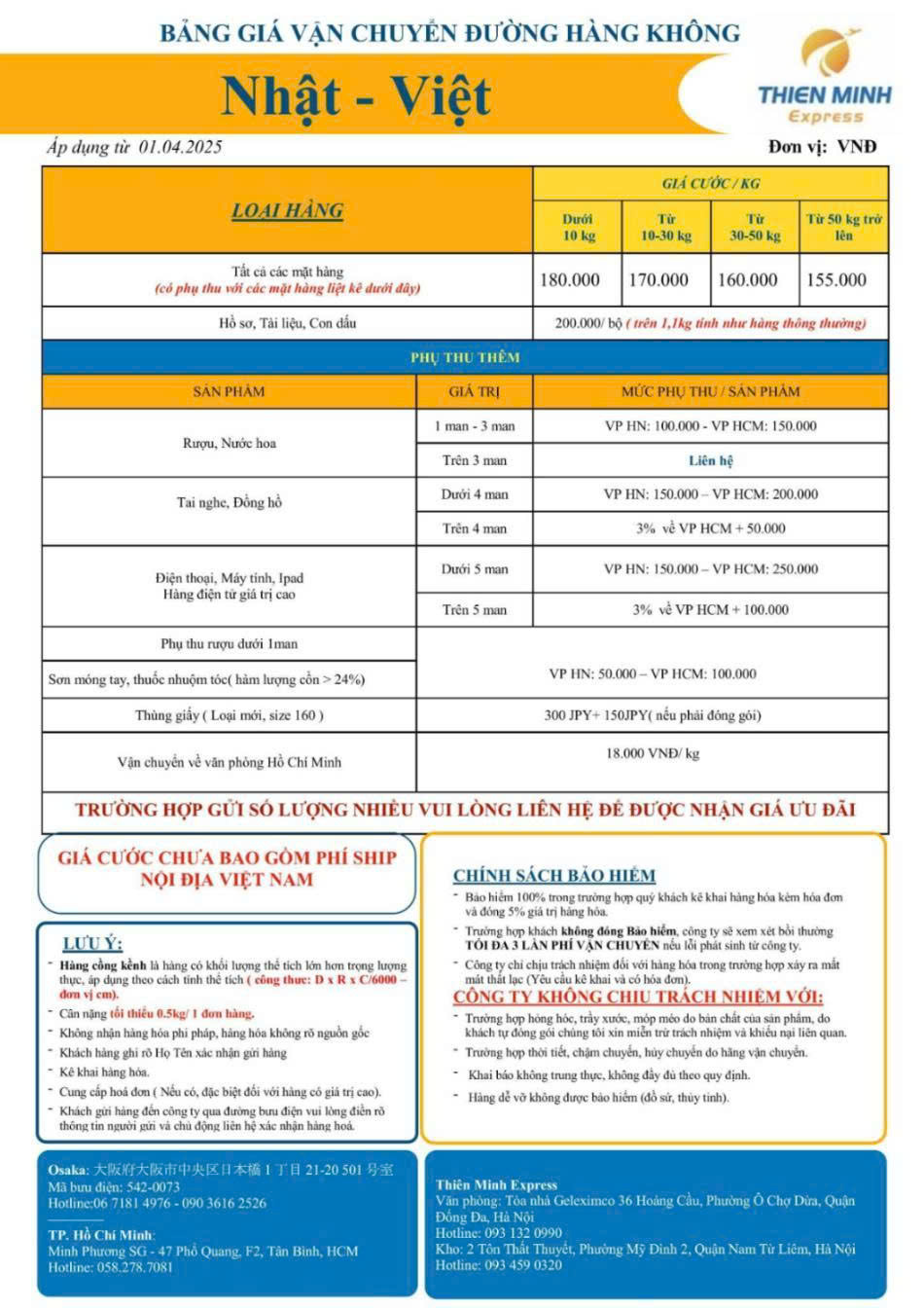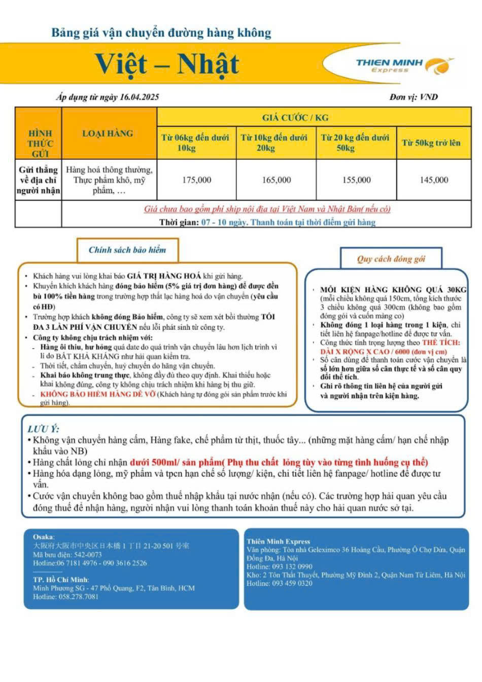 Biểu phí tại Thiên Minh Express không chỉ là con số, mà là giải pháp giúp khách hàng cân đối chi phí – tối ưu thời gian – đảm bảo hiệu quả vận chuyển.